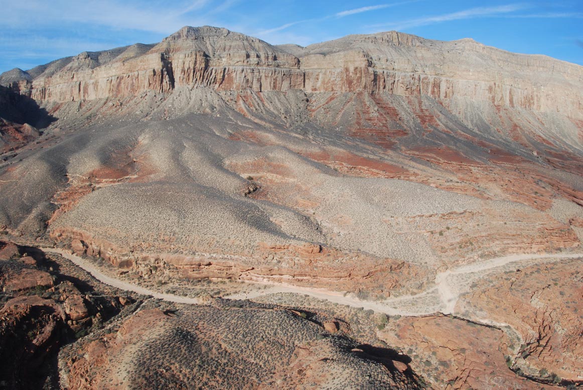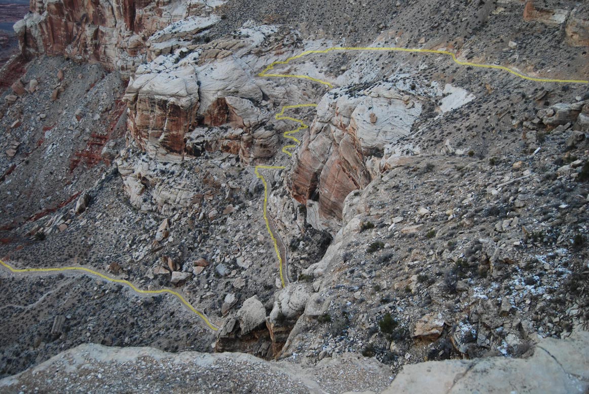 We take a look at our trail, then head on down.