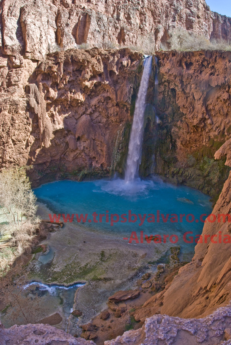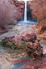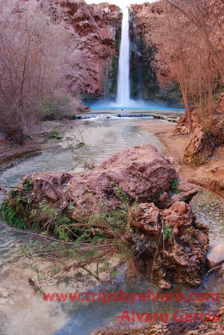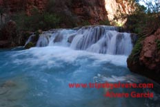 We continue on our hike to the campsite, once we go accross the creek that leads to Havasu Falls we begin to get excited. I start hiking faster, and after a hundred feet or so I am reward with the most spectator water fall I have ever seen!