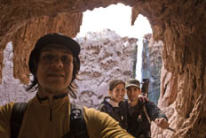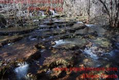We continue on to Beaver falls, and run across a problem. We have to cross the creek, but being winter and the water being cold with no change of shoes or socks, we get stuck. Claudia and Carlos think of crossing the creek, but later chicken out.