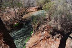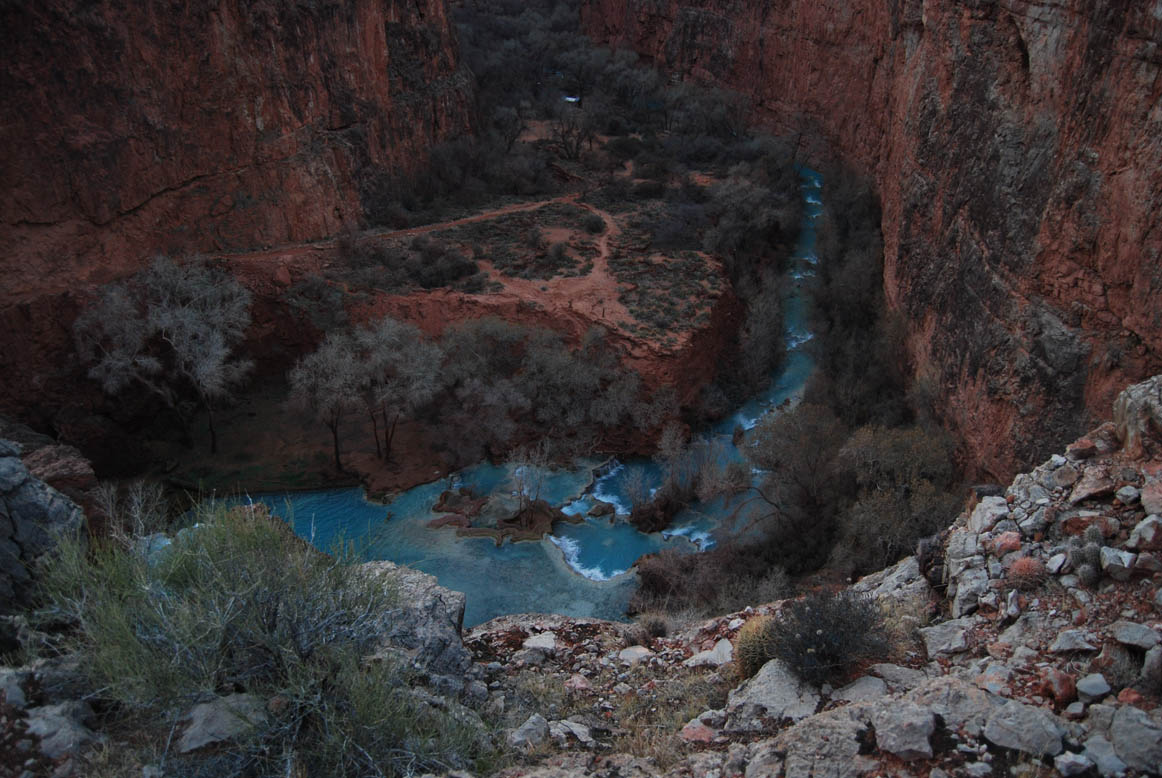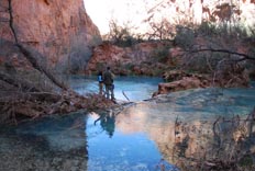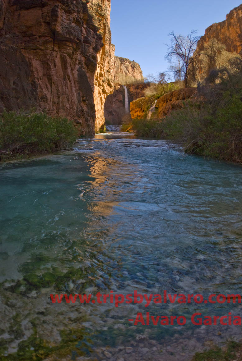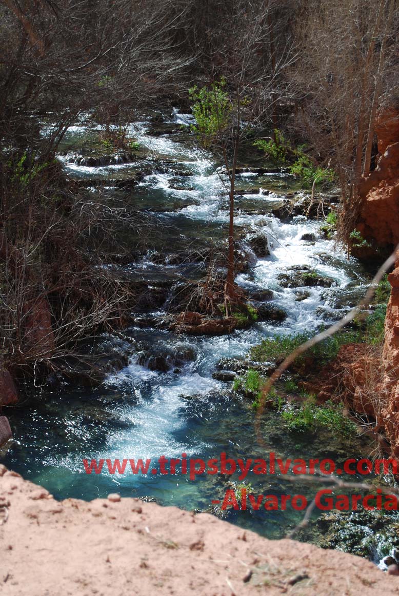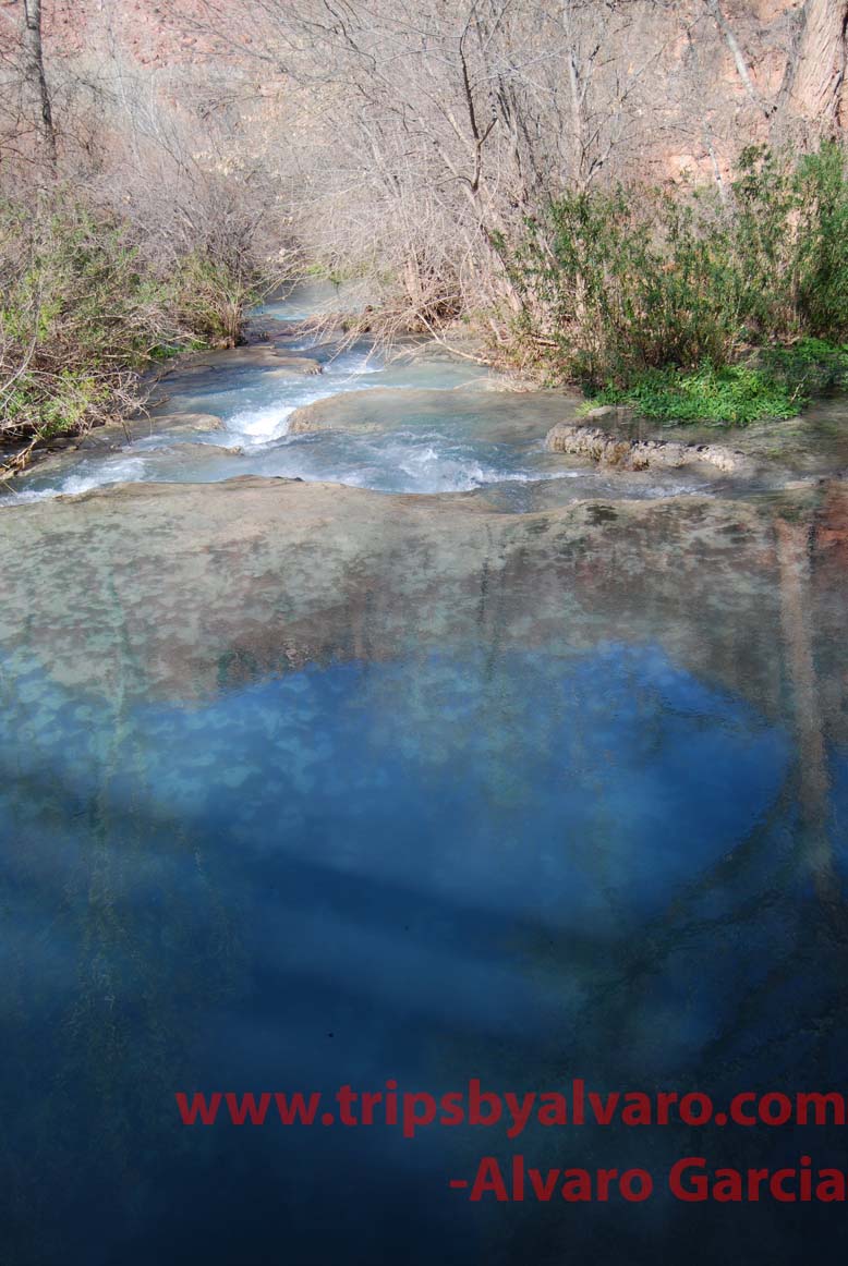 Once our permits are in order we begin to hike the remain 2.2 miles to the campsite. On the way to the campsite we see the water that leads to Navajo Falls and decide to take some pictures.