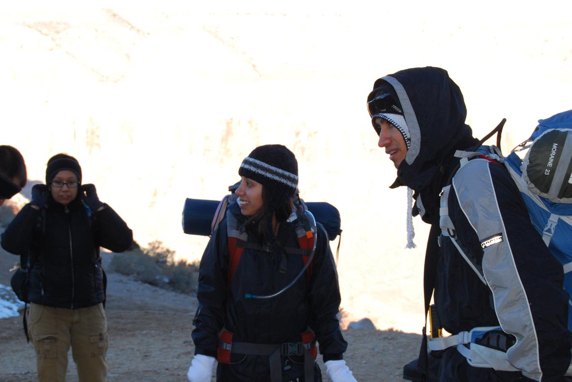 Once we've got about an hour of sleep, we being to prepare for the 10 mile hike to our camp site.