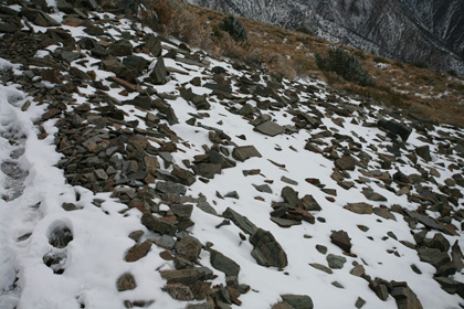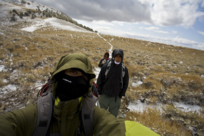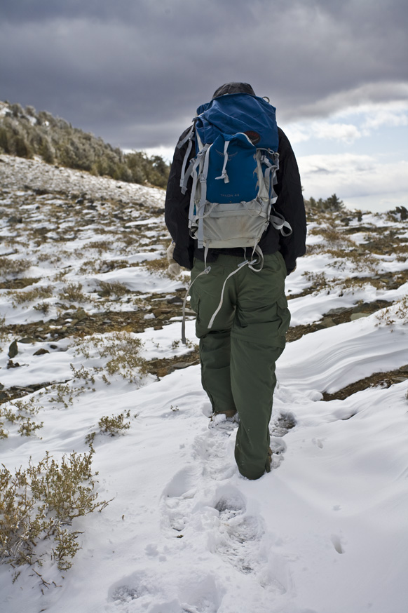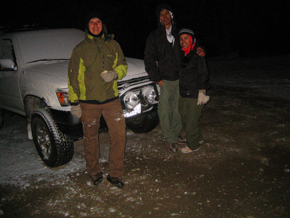 So me and Francisco and Yohanna decide to tackle telescope peak on the October 11th 2008. We started driving off towards Magohany Flat campground where the trail head begins at 8133ft at 9pm Friday night. It was pretty smooth driving, and lucky didn’t get lost this time. Once we were about 1/2 mile from the campsites on the unpaved road, we got stuck in the snow, twice! After digging out the snow and getting some gravel under the tires we were back on our way.